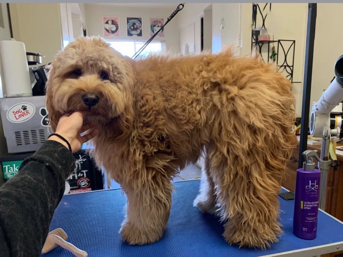 Doodle hair can be extremely complicated to take care of and when it mats- it’s super frustrating for everyone including your pup. The longest we’ve had Pax’s coat was 5inches. As much as I loved my darling little puff ball he was miserable. Stickers would trench themselves in his hair, paws, and belly… we had to spend so much time working out tangles that it took away from fun things he could be doing. That wasn’t ok for us, so after our most recent road trip vacation we cut Pax down to 1 1/2 inches- and it’s made the biggest difference. We went from having mats covering his body and brush outs on the daily to no mats and brush outs 1-2 a week. Pax has more fun, it’s much easier to maintain his coat, and I can tell he’s happier not having to be groomed for 7 hours :)