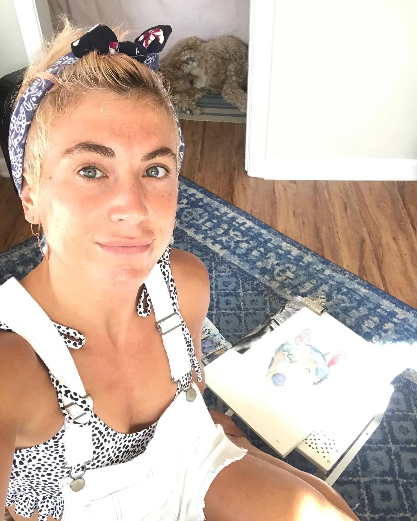 i wake up around 6 am every day. get coffee, and sit down and start drawing, painting. take a break, do a workout, get back to it. take a break, walk my dogs, hang out with friends, and in the evenings is really when I'm feeling the most creative.
