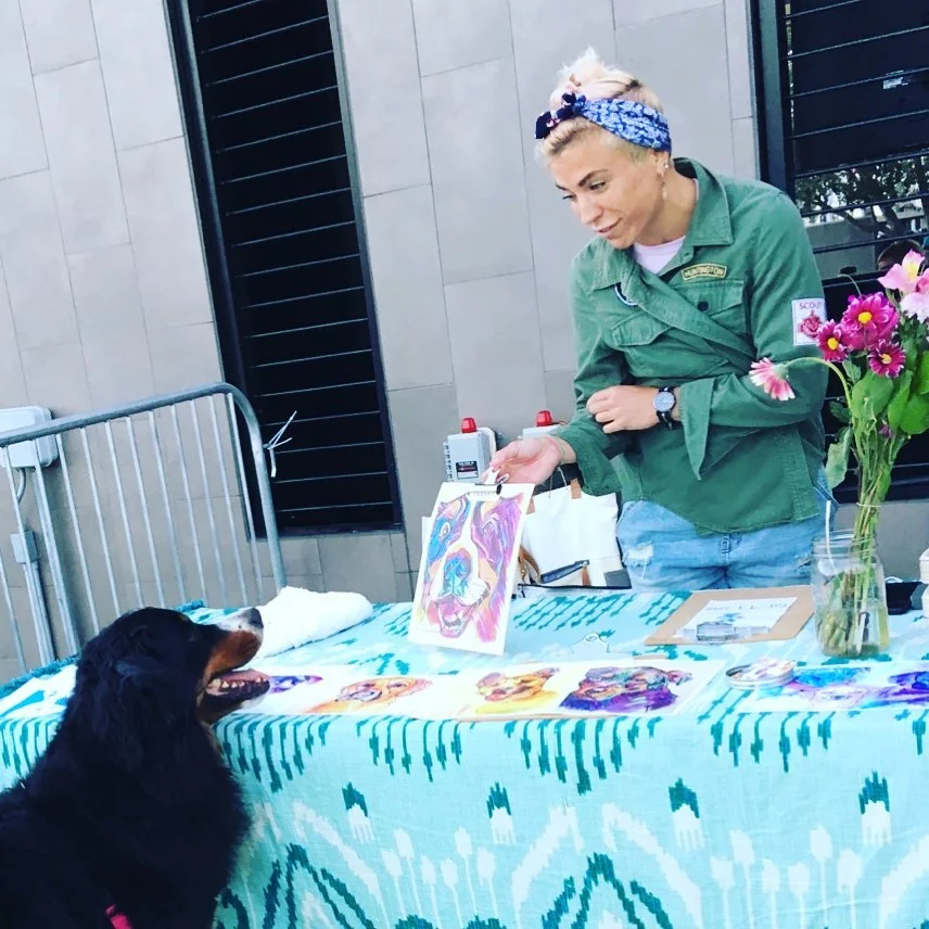 Today we are celebrating female founder Raechel Campbell of RC Arts! This gal has an undeniable gift of capturing energy and emotion and vividly putting them on a piece of paper. Raechel creates colorful portraits of animals using different types of media like watercolor, colored pencils, acrylic and pens.